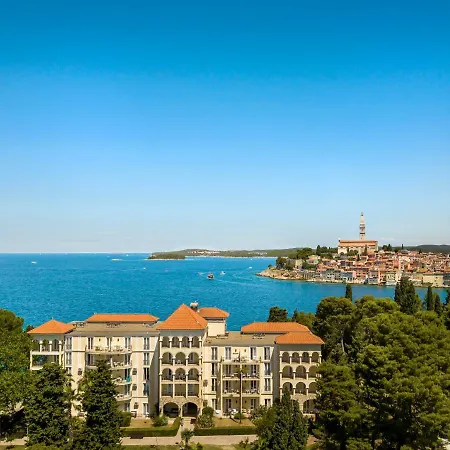 Oferujący widok na morze, Grand Park Hotel Rovinj By Maistra Collection jest 5-gwiazdkowym hotelem, położonym 10 min samochodem Strand Baracken Rubin. Hotel znajduje się w bliskiej odległości od Kościół św. Eufemii w Rovinju oraz zapewnia obiekty sauny i kryty basen.